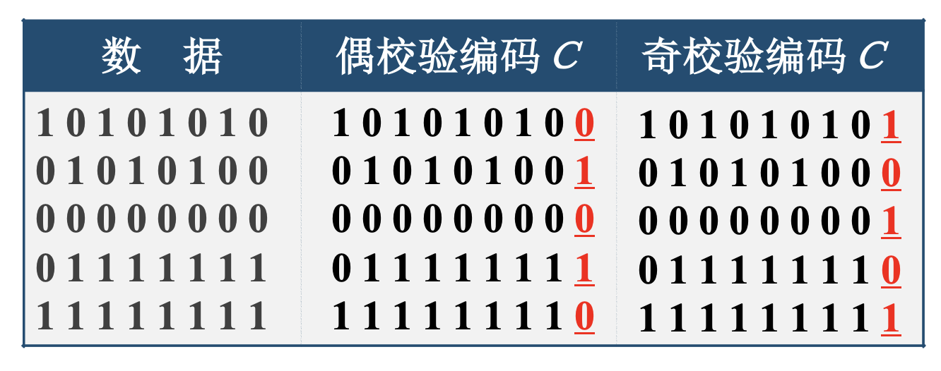 奇偶校验码:加一个校验位,使整个数据中1的个数保证为奇(偶)数个。